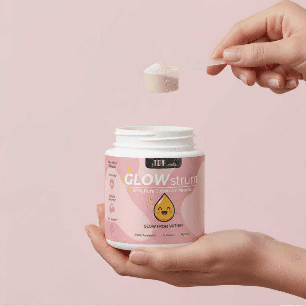 Meet your new daily ritual — Glowstrum, a premium colostrum powder crafted to support your gut health, toned physique, immunity, and glow- up goals from the inside out.